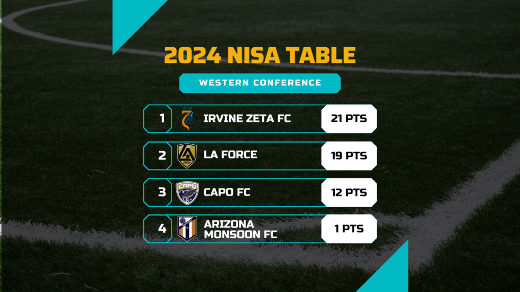 On the West Coast, we all thought the LA Force would run away in the Western Conference, but its first-year expansion side, Irvine Zeta FC, leading the West with 21 points. George Almeida is the club’s top goalscorer with 4, Shinya Kadono setting up the team, and goalkeeper Mitch North leading the Golden Glove Race with the most clean sheets. Zeta FC is also on an unbeaten streak of six matches. The LA Force is in second with 19 points and is led by Michael Salazar, who scored five goals, and goalkeeper Seth Torman played well in the goal. You also have to watch key role players like Chila, Joel Quist, and Alex Juarez. LA also has a game in hand on Irvine and has three more matches left against them that could determine who will be the top team out west and host a playoff match. Capo FC is third with 12 points and recently snapped its two-match losing streak with a win over Arizona. Capo beat LA once but has yet to beat Irvine Zeta this season. Like Savannah, if they want to get back in the playoff hunt, they will need to start picking up wins against the top teams in their conference. Arizona Monsoon FC is the only club without a win this season and is on a nine-match winless streak. This club has yet to catch a break with injuries, a depleted roster, postponed matches and had to forfeit a match. Let’s see if the second half can go a little better for Monsoon FC and see if they can get some wins. I’m not anticipating the top two teams in each conference to change much, but you never know. Just look at last year. At one point, it looked like Flower City Union wasn’t going to make the playoffs, but they got hot late in the second half of the season and made it, and well, we all know how that story ended for the 2023 NISA Champions.